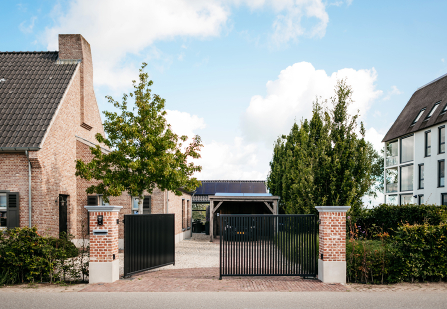 Voor deze prachtige Kempische woning in Opheusden hebben wij 2 elektrische dubbele draaipoorten geplaatst. Er is gekozen voor model Wageningen tussen gemetselde poeren in de stijl van de woning. Dit model is een fraai voorbeeld van een tijdloze sierpoort met een strakke en zeer stijlvolle uitstraling. De poorten zijn uitgevoerd met 180-graden scharnieren zodat de binnenste poortvleugels 180 graden open kunnen waardoor er ook eenvoudig voor de woning geparkeerd kan worden.