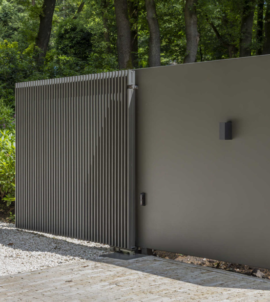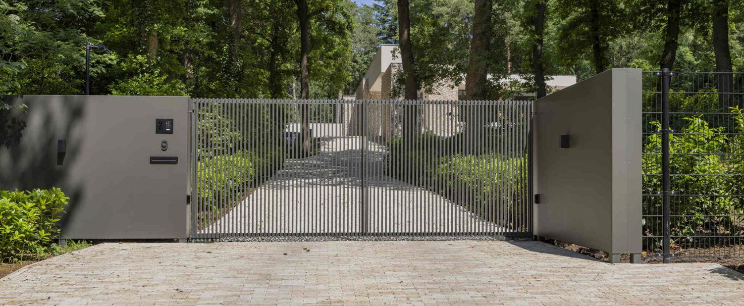 Moderne poort met panelen - bij Marco van Veldhuizen