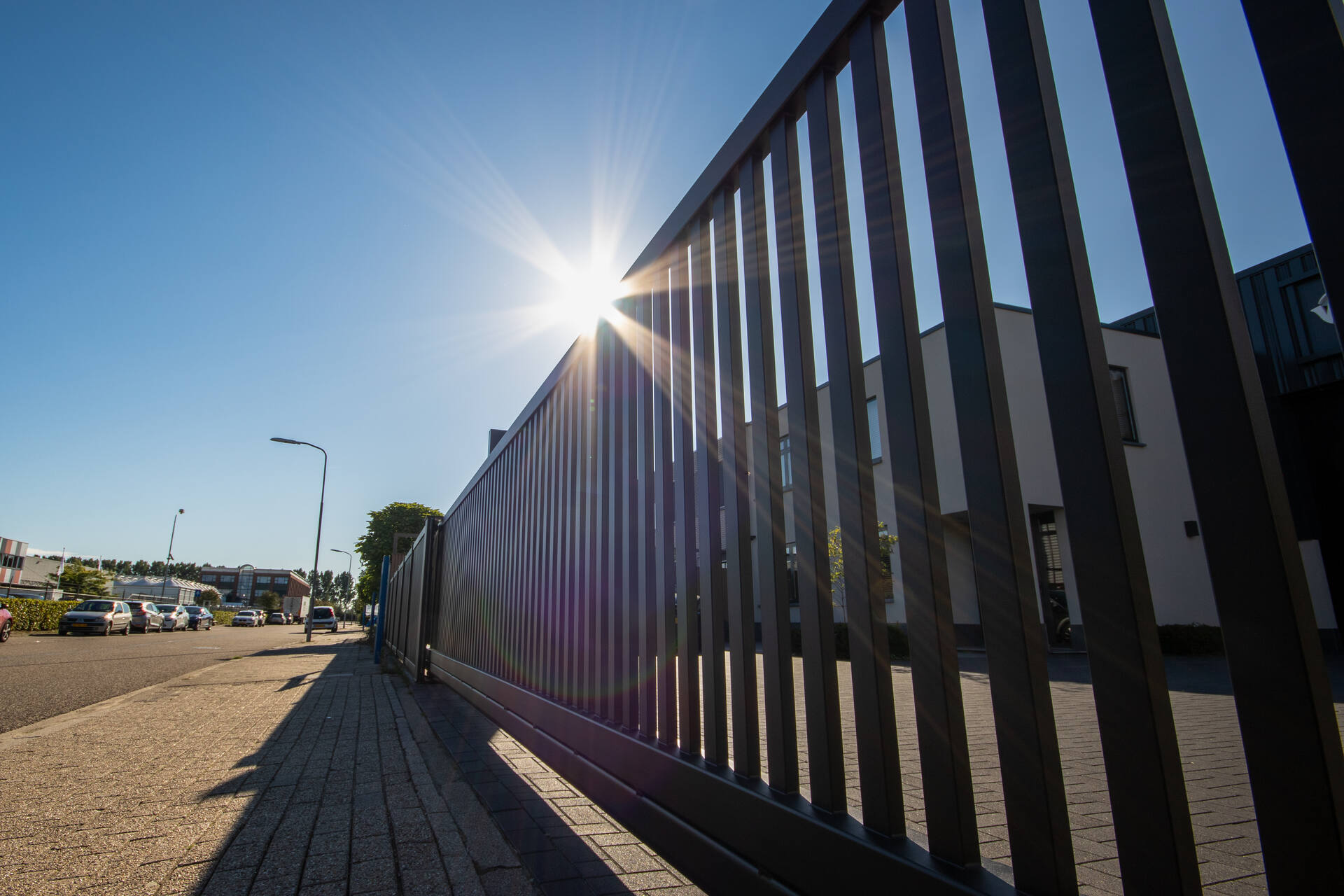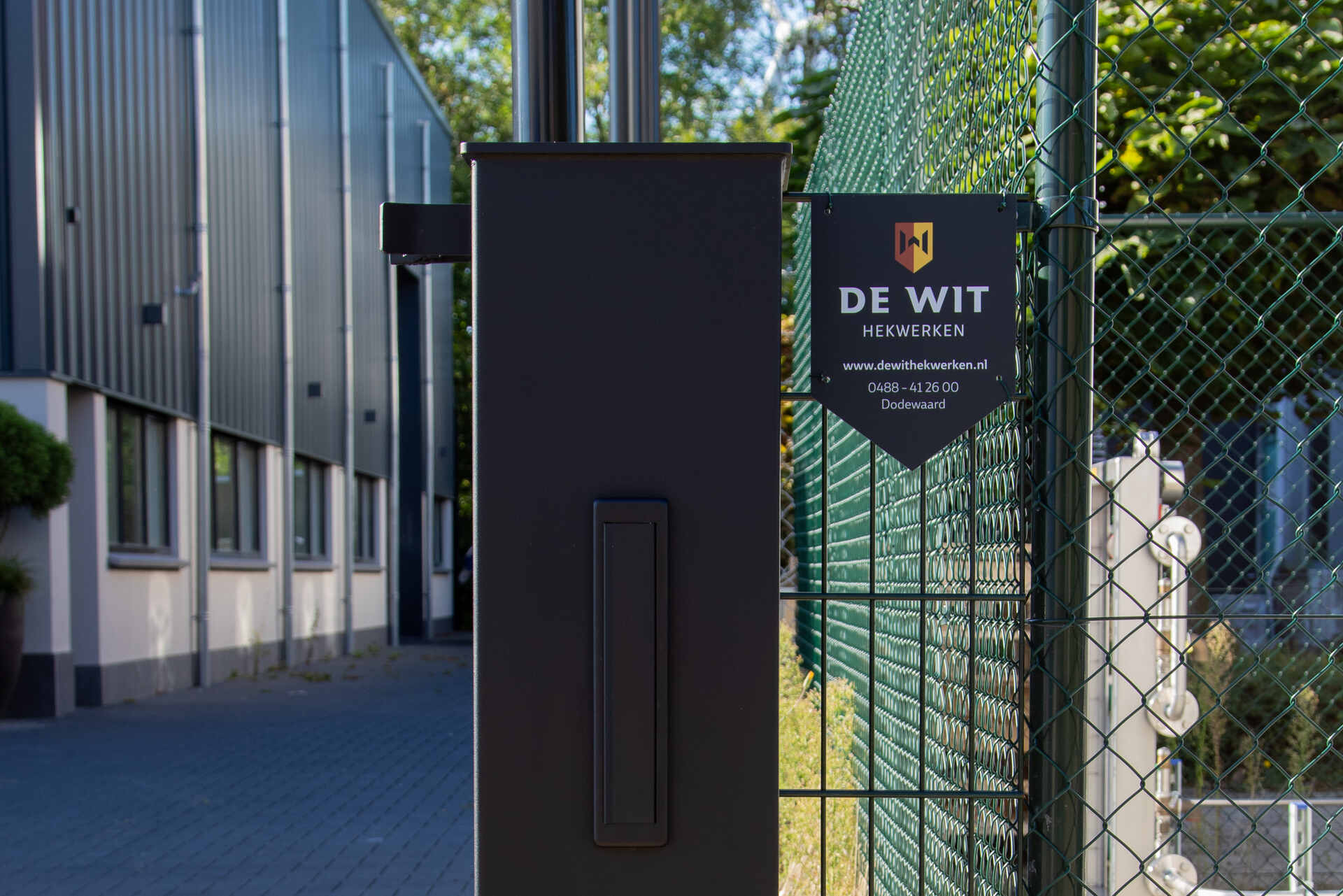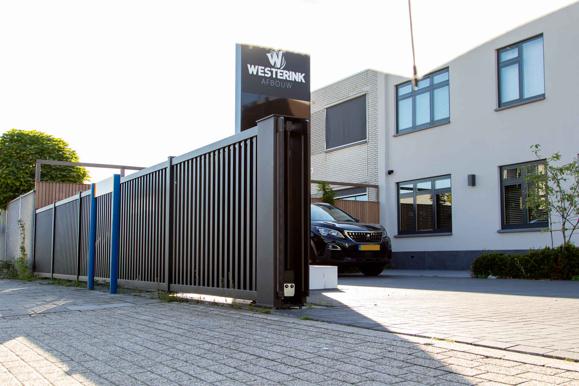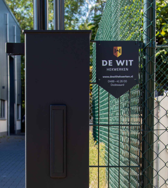 Bij Westerink Afbouw in Ede hebben we deze strakke schuifpoort met bijbehorend hekwerk geleverd. De robuuste poort zorgt voor een effectieve maar stijlvolle afsluiting van het bedrijfsterrein.