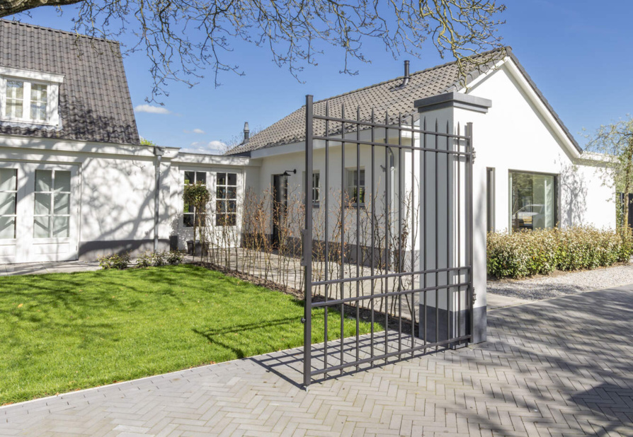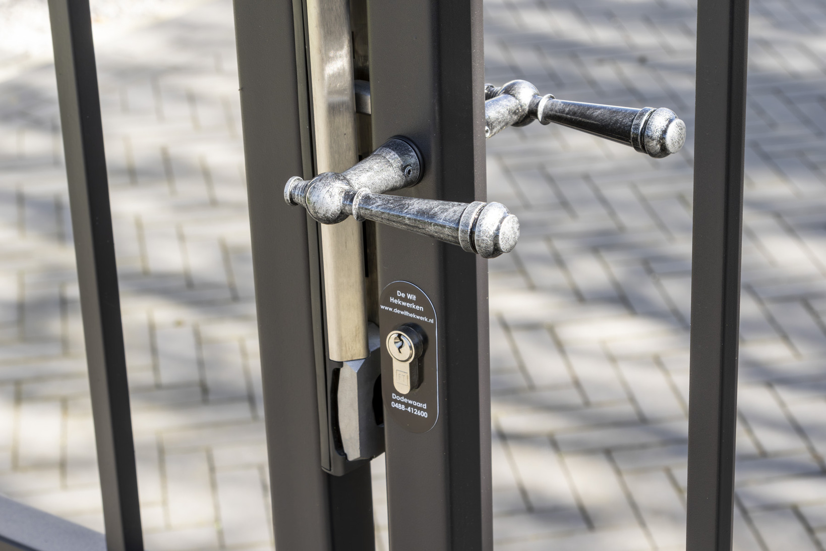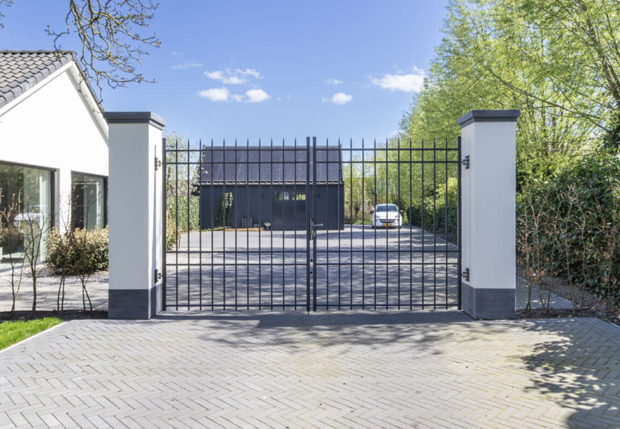 Statig en stijlvol. Zo zou je deze prachtige poort kunnen omschrijven. Wij hebben deze handmatig bedienbare draaipoort geplaatst op een mooie locatie in Geldermalsen. De poortvleugels zijn gemonteerd tussen 2 robuuste poeren, die zijn uitgevoerd in de stijl van de woning. Op hetzelfde perceel is een looppoort geplaatst, in dezelfde stijl als de dubbele draaipoort.