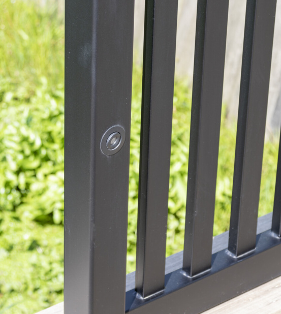 Voor deze prachtige woning hebben we een dubbele draaipoort, een enkele draaipoort en bijbehorend sierhekwerk geplaatst. Er is gekozen voor model Dublin. De poort is gemonteerd tussen XL-palen van 300 x 300 mm, waarin een brievenbus en besturingskast is geïntegreerd. In het hekwerk hebben we subtiele verlichting verwerkt.