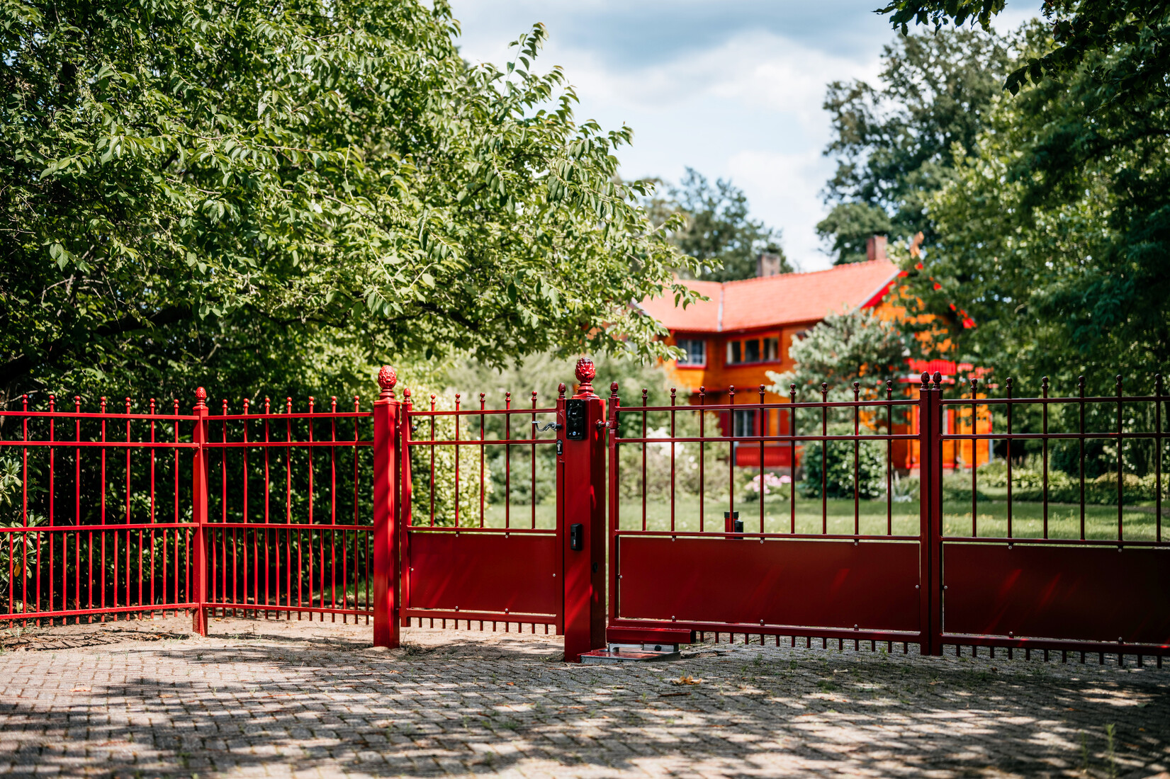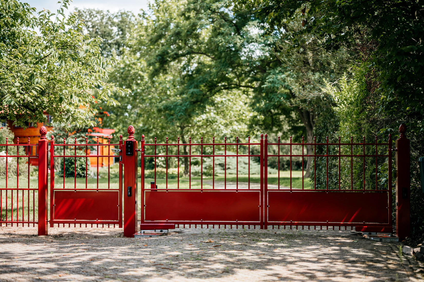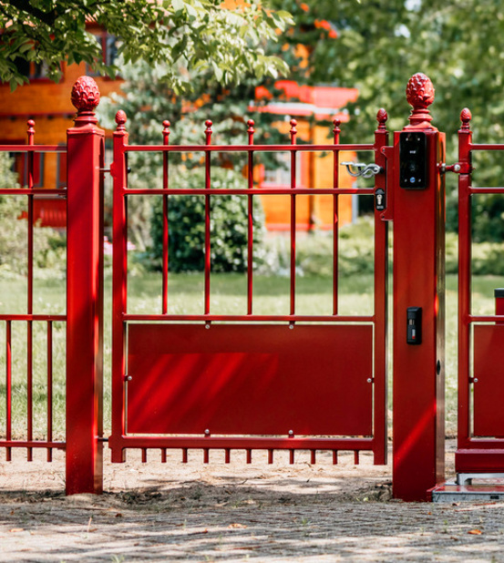 De toegangspoort model Berlijn is een poort die past in vrijwel iedere omgeving. De poort kenmerkt zich door zijn rechte lijnen en de plaat onderin de poort.