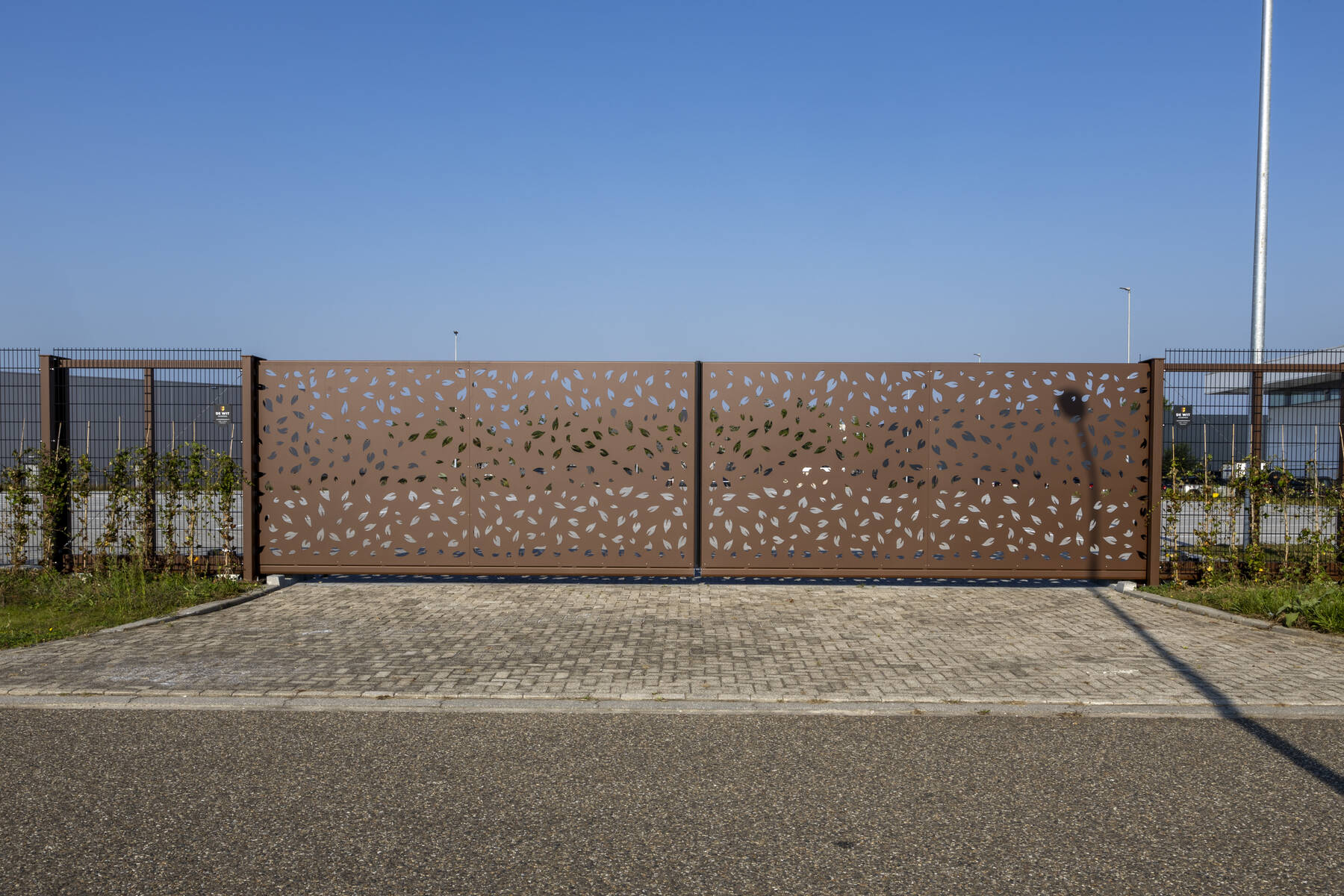 De toegangspoort model Flora is op alle vlakken uniek. Misschien is het zelfs wel het meest unieke model, toegangspoort in Nederland. Het patroon wordt op maat gelaserd door een lasermachine die tot op de mm. nauwkeurig het patroon uitsnijd. Deze poort kan perfect gecombineerd worden met bijvoorbeeld een haag.