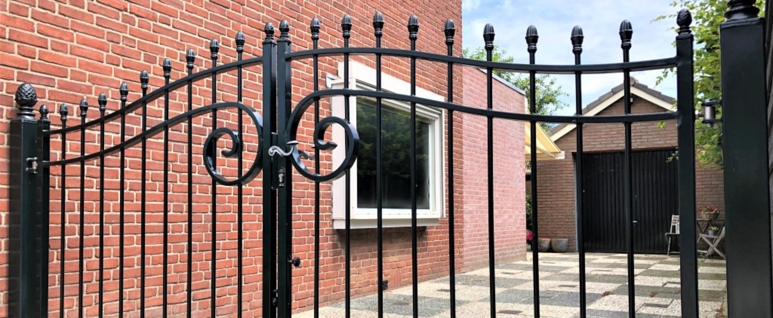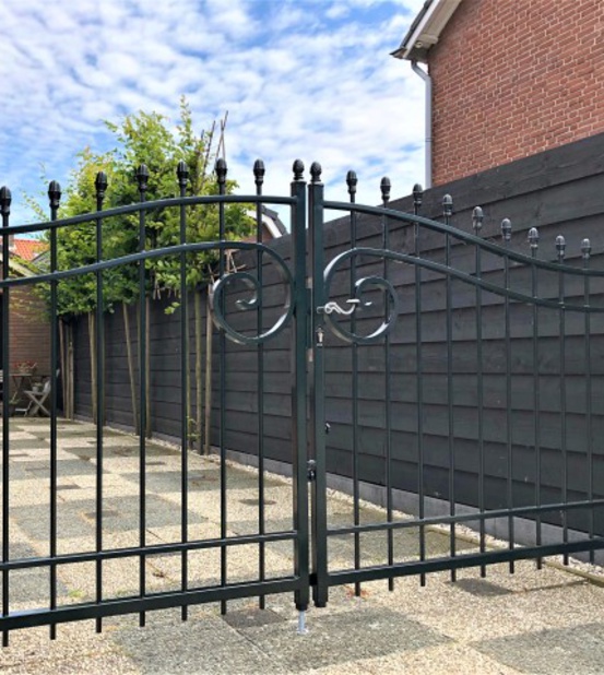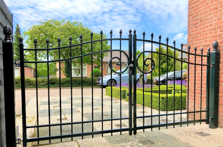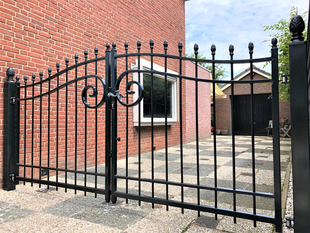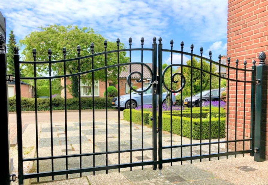 De inrijpoort model Praag onderscheidt zich door de unieke massieve sierkrul in het midden van de poort. Dit prachtige stukje maatwerk zorgt voor een geheel eigen uitstraling. Verder heeft de poort een neutrale uitstraling waardoor hij in zowel een klassieke als tijdloze tuin past.
